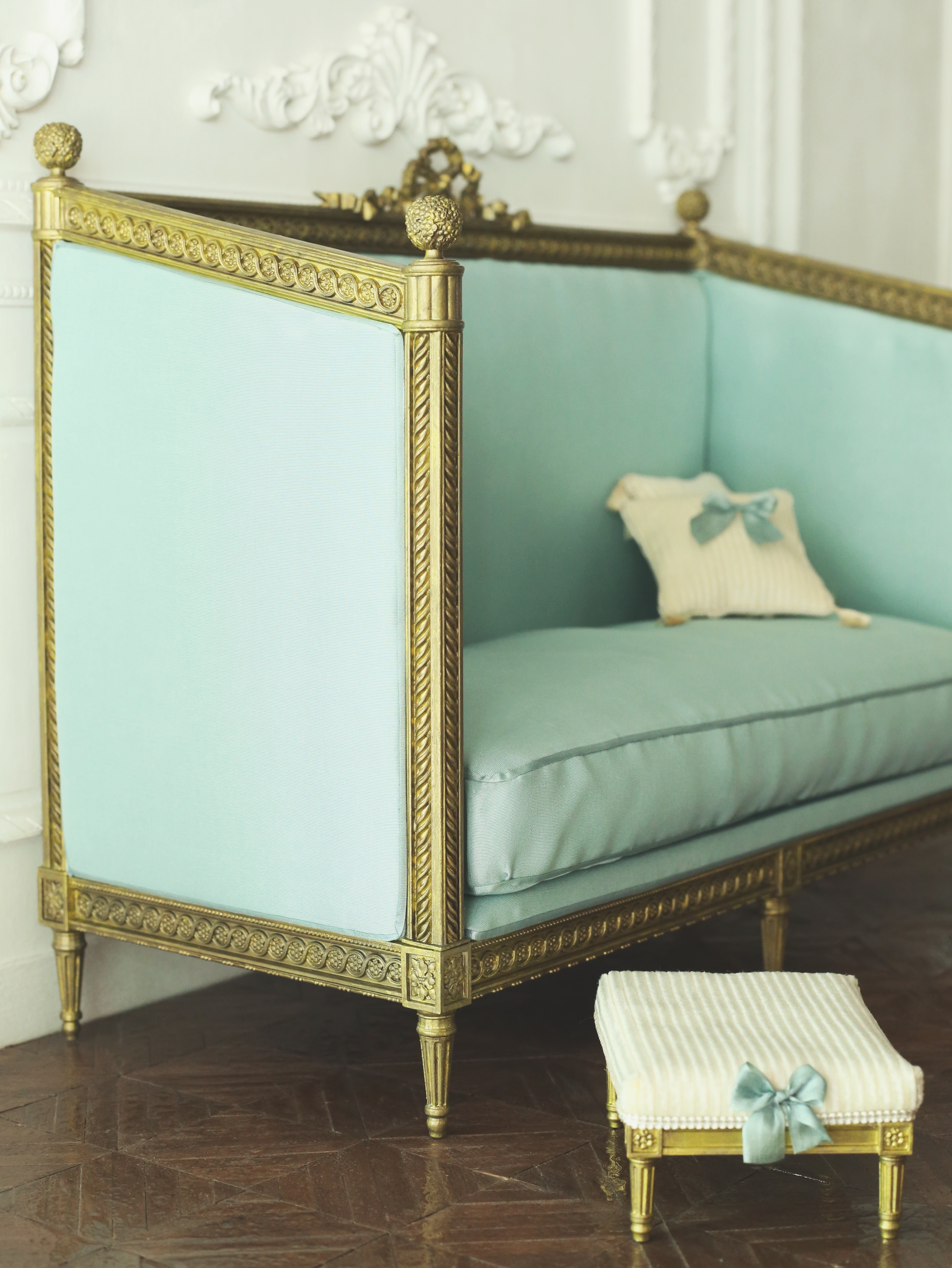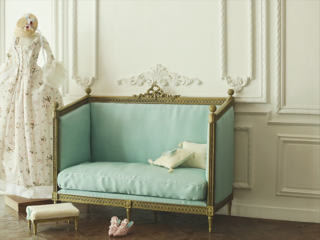 This adorable and elegant sofa is based on the small sofa at Moika Palace in St. Petersburg, with details redesigned by DD-Anne. The long leg version is specially designed for fashion dolls .