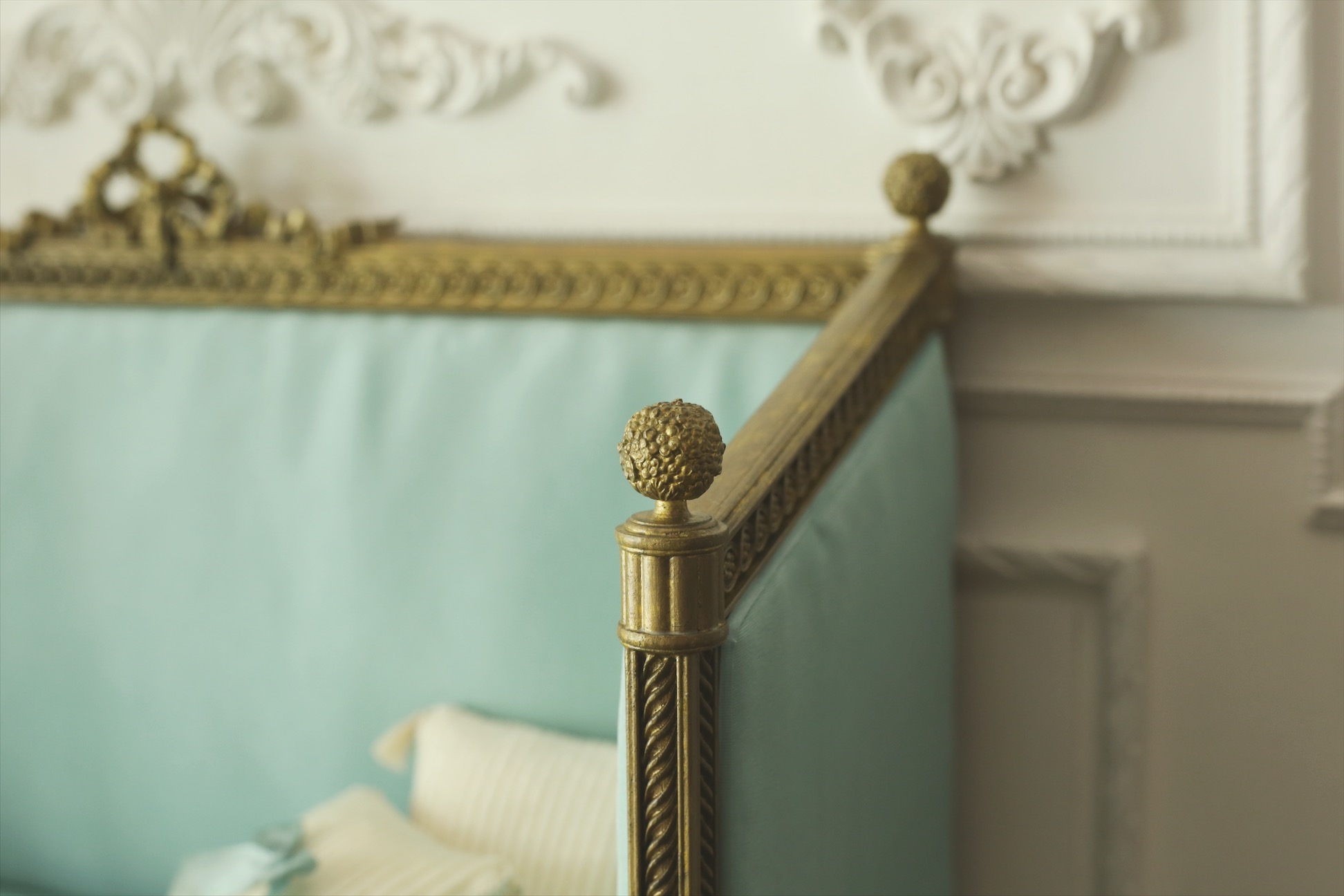 This turquoise stool is a reference to Villa Tremezzo on Lake Como, Italy.