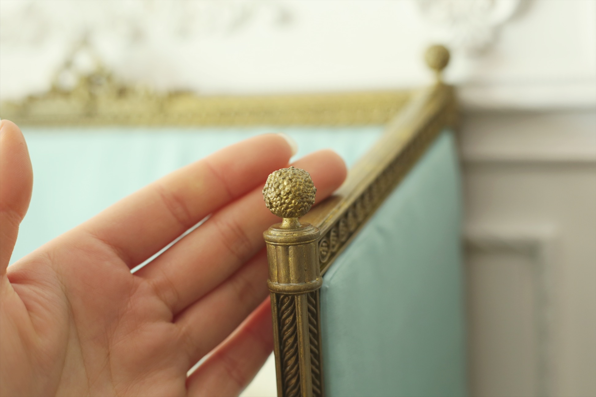 | upholstery | blue brocade | pink jacquard tencel+buttoning |
